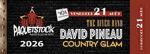 Vendredi 21 Août: Soirée Country The River Band David Pineau Country Glam (Productions d’Alter Ego) 21h00 – 1h30 Portes ouvrent à 20h00